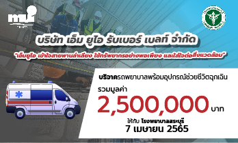 คณะผู้บริหาร เอ็ม ยู ไอ กรุ๊ป และบริษัท เอ็ม ยู ไอ รับเบอร์ เบลท์ จำกัด โดยคุณ ลัดดา แก้วสว่าง ประธานบริษัท และ คุณรหัส วรรณภานพ กรรมการผู้จัดการ พร้อมด้วย คุณรติ คุณอณุพล คุณรติญา วรรณภานพ มอบรถพยาบาล พร้อมอุปกรณ์ช่วยชีวิตฉุกเฉิน จำนวน 1 คัน มูลค่า 2,500,000 บาท ให้กับโรงพยาบาลสระบุรี โดยมี นายวิเชียร ระดมสุทธิศาล รองผู้อำนายการฝ่ายบริหาร โรงพยาบาลสระบุรี และนาง วิไลวรรณ แสงธรรม รองผู้อำนวยการฝ่ายพยาบาล โรงพยาบาลสระบุรี พร้อมด้วยทีมพยาบาลจากงานอุบัติเหตุ ฉุกเฉิน และคณะเจ้าหน้าที่โรงพยาบาลสรบุรีร่วมรับมอบ ทางด้านนาย รหัส วรรณภานพ กรรมการผู้จัดการ กล่าวว่า การมอบรถพยาบาล พร้อมอุปกรณ์ช่วยชีวิตฉุกเฉิน มีวัตถุประสงค์ที่จะสร้างคุณประโยชน์ด้านการสาธารณสุข […]